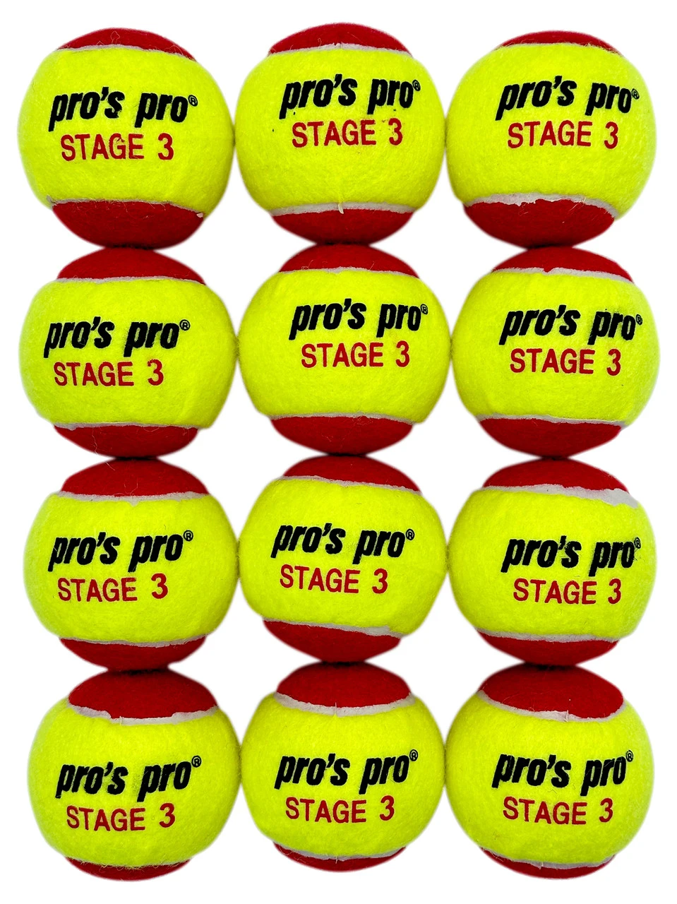Pro’s Pro Stage 3 Red Junior Tennis Balls are low compression, felt balls which are the conventional balls at 70mm diameter. These are perfect for smaller children to learn tennis and are 75% slower than standard tennis balls.